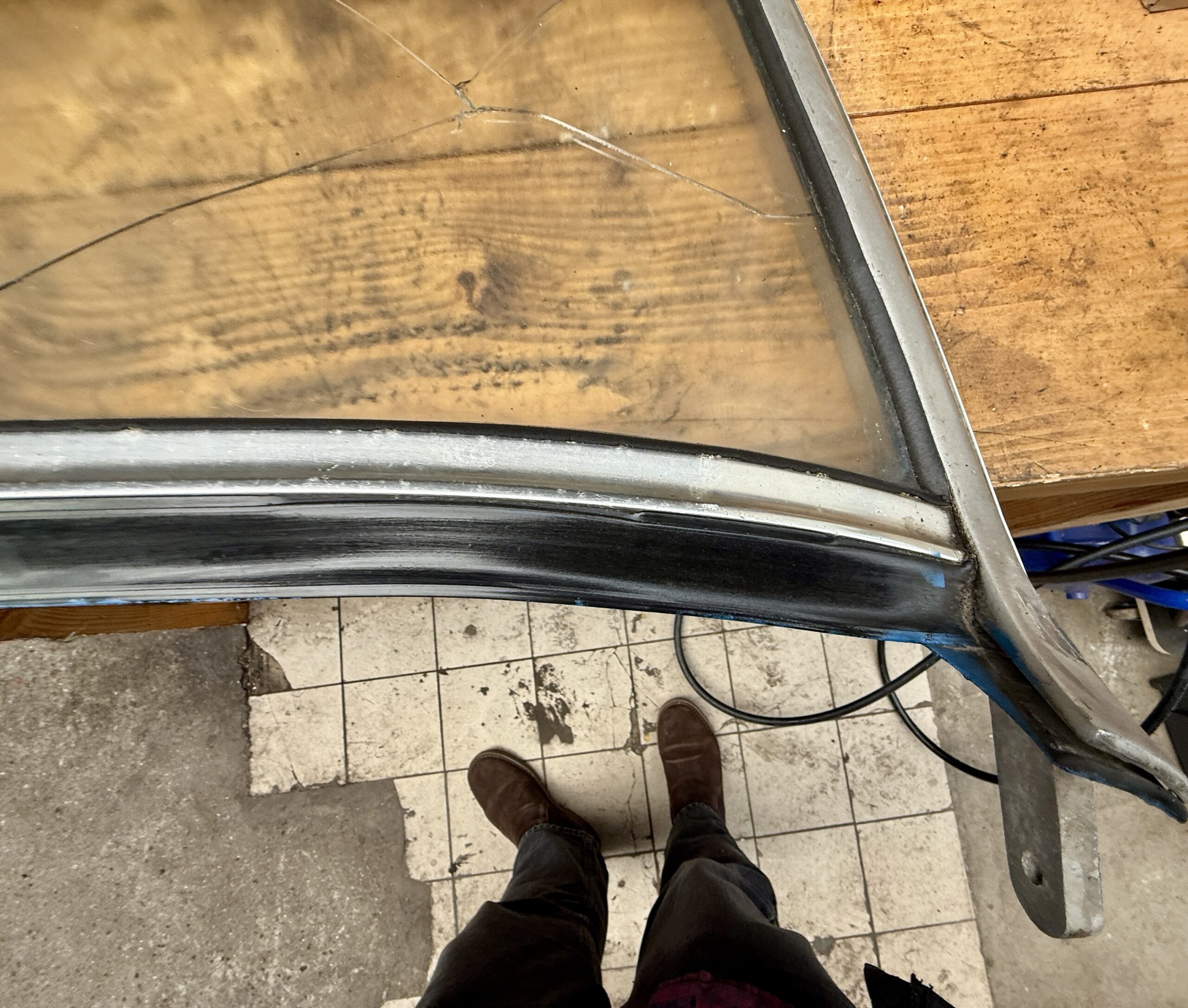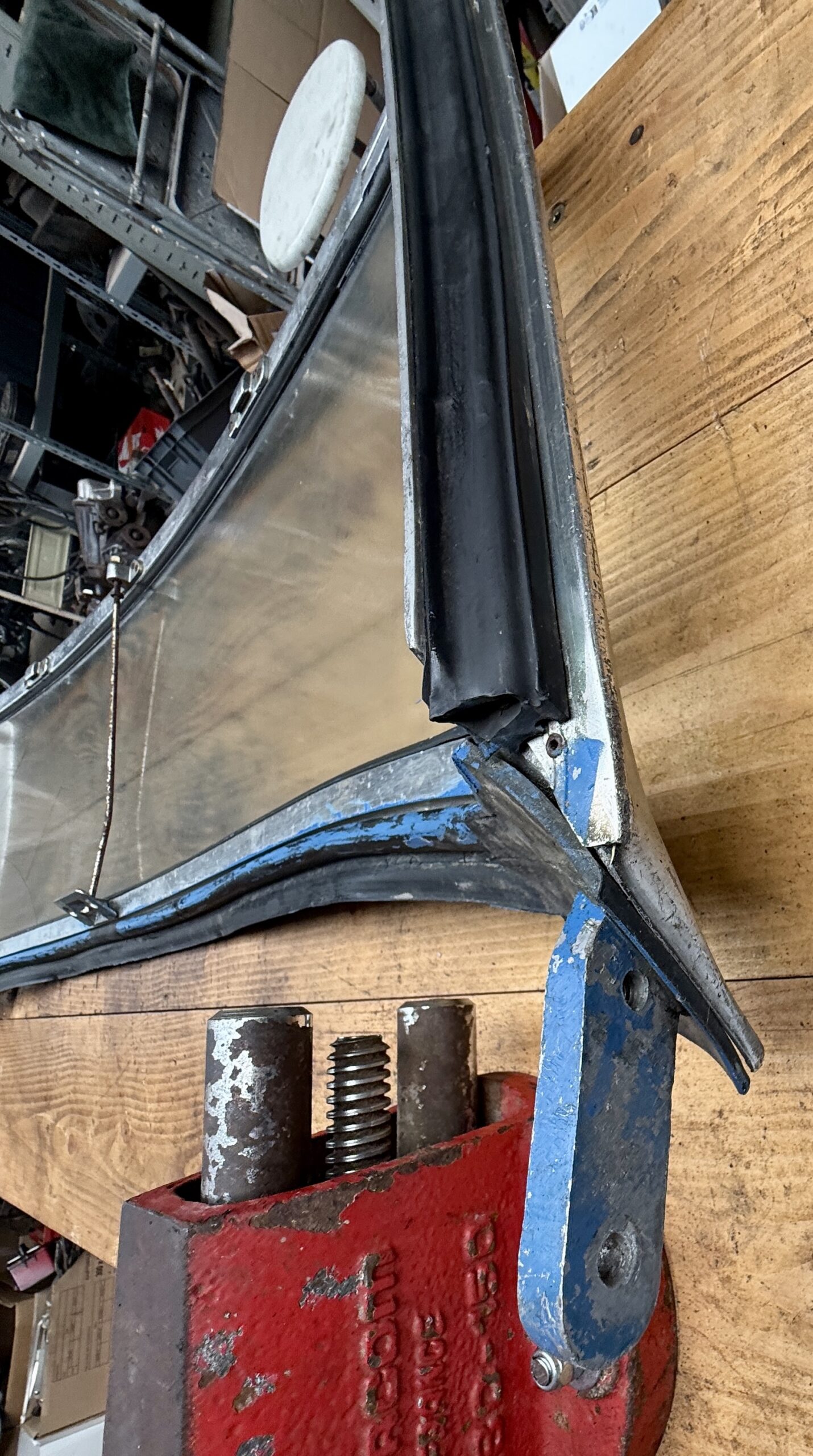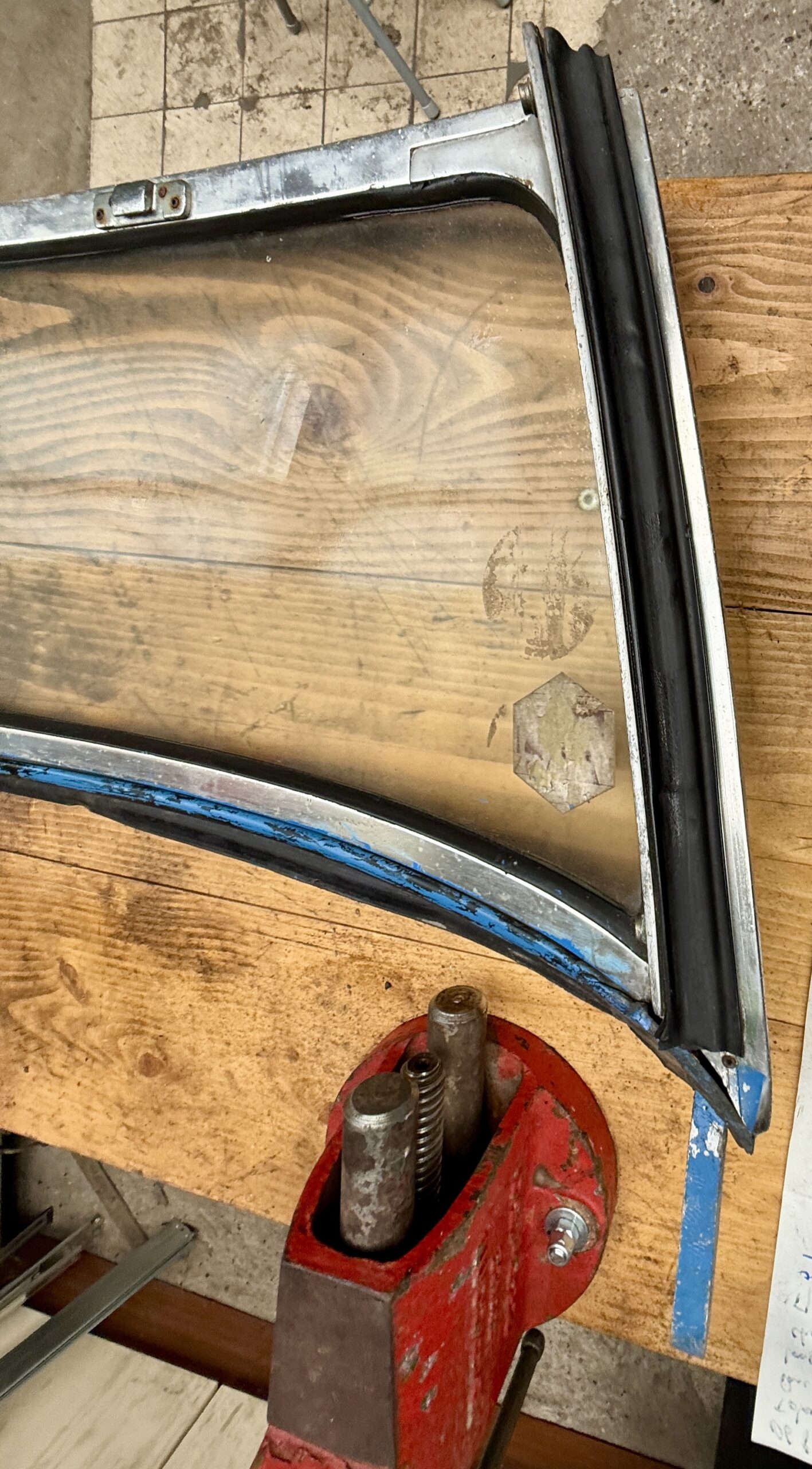 Baie de pare-brise pour MGb en bon état. Pare-brise et joint à changer.